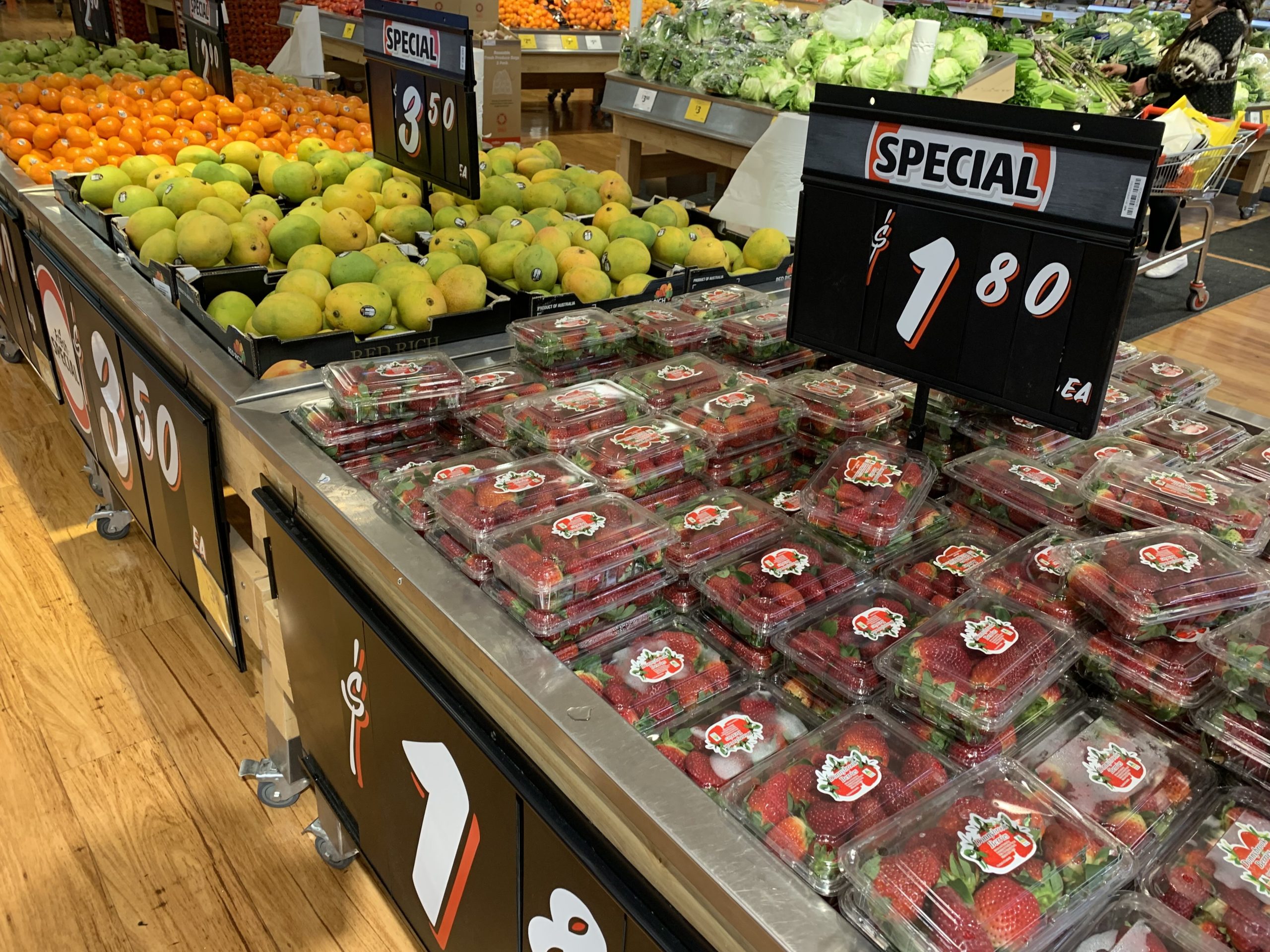 オーストラリアのスーパーマーケットで、イチゴを見つけてその安さに驚愕して撮った写真。