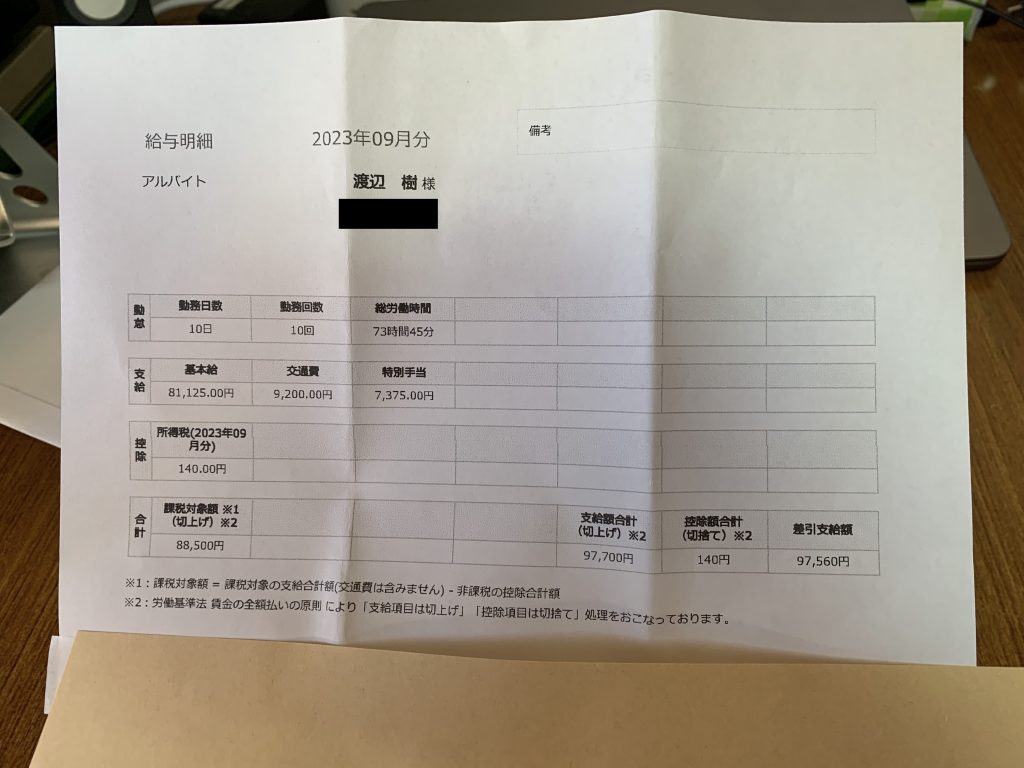 以下の写真は当時の限界生活の給与明細です。家計は赤字でタイムリミットが迫っています。